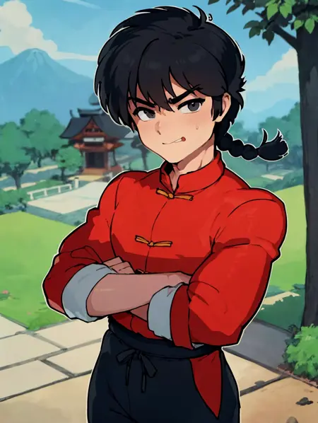 モデルは二種類のバリエーションがあります:1boyとoyuは男性ランマを、1girlとmizuは女性ランマを生成します。いずれにせよ、衣装の上半身はしっかり再現できるように設計されています。chinese clothesで取得可能ですが、パンツはあまりに全身画像が少なかったため、それほど正確ではありません。靴も同様です。男性ランマは女性版と同じく青い目を持ちますが、その点は適宜調整してください。バージョン2ではコンセプトを分離する予定です。
