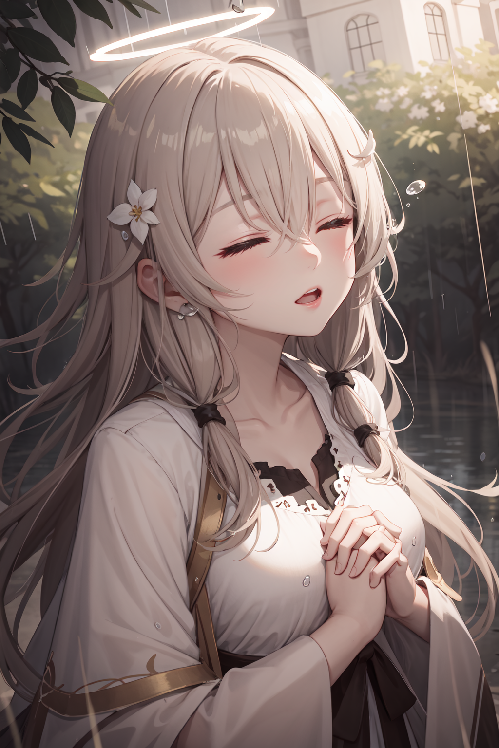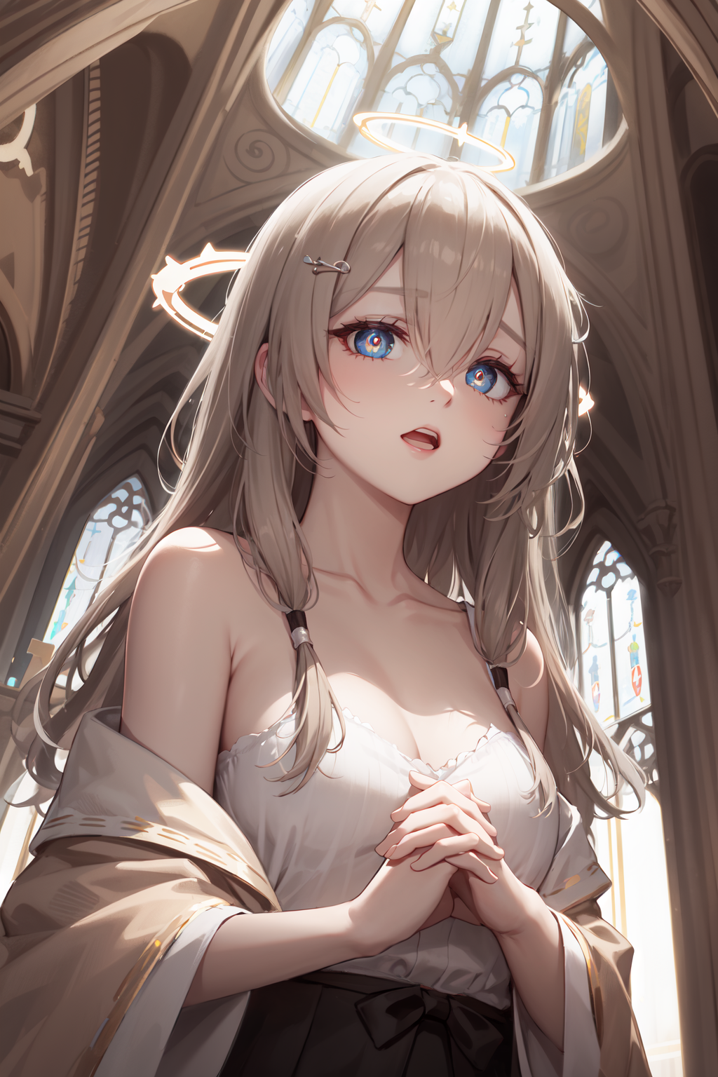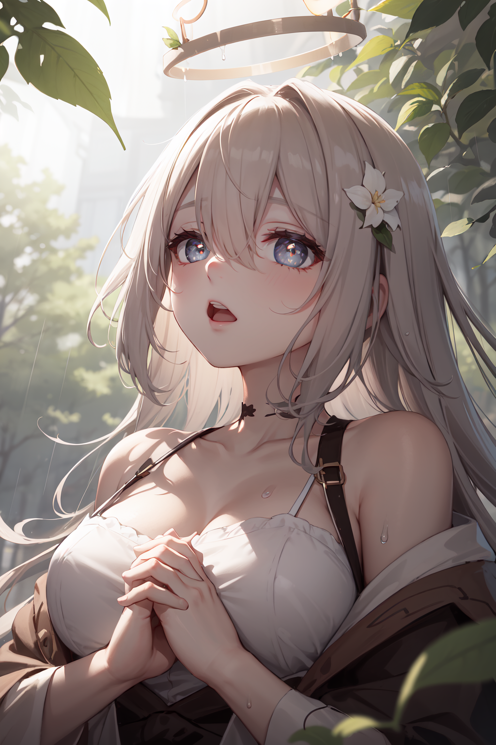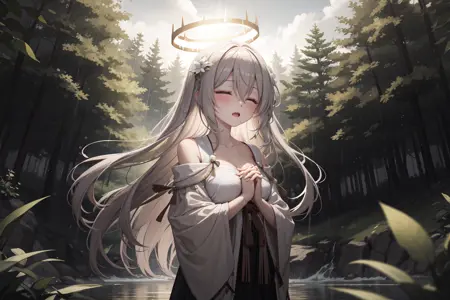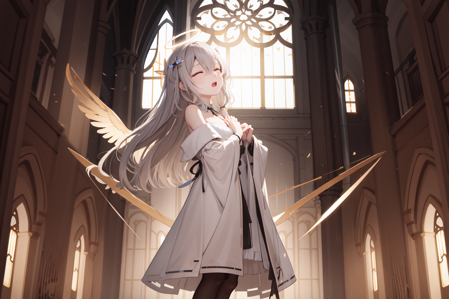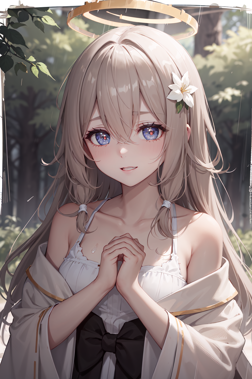 It is slightly shameful that the halos in the pictures are not so similar as the original one in the game. Sometimes the halo may become bigger or smaller. In addition, it is quite difficult for SD to generate the wings of the original style in the game, since the wings of a Sankta is really unique and distinct from the wings in the real world. Personally speaking, I also feel a bit sorry about these details.