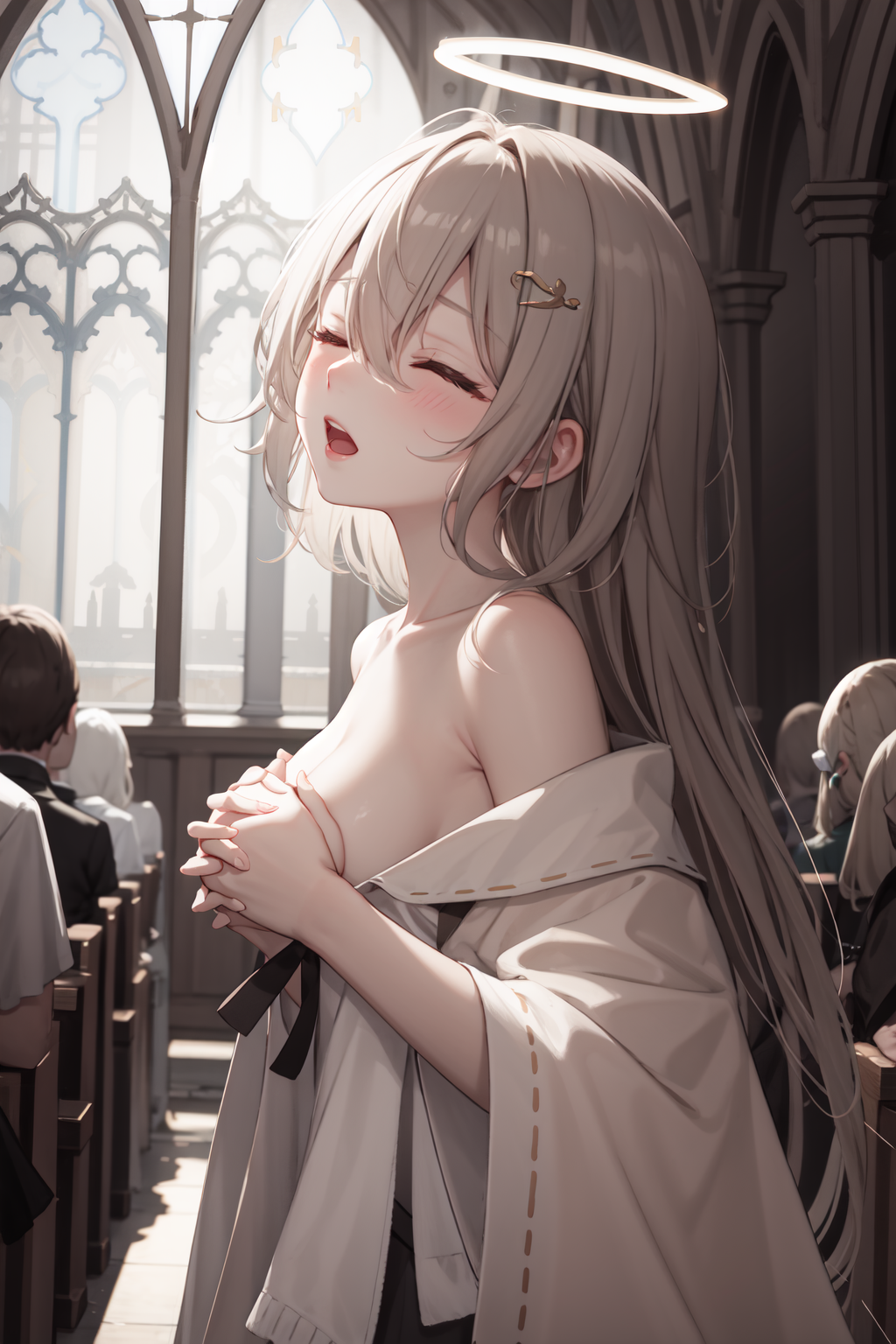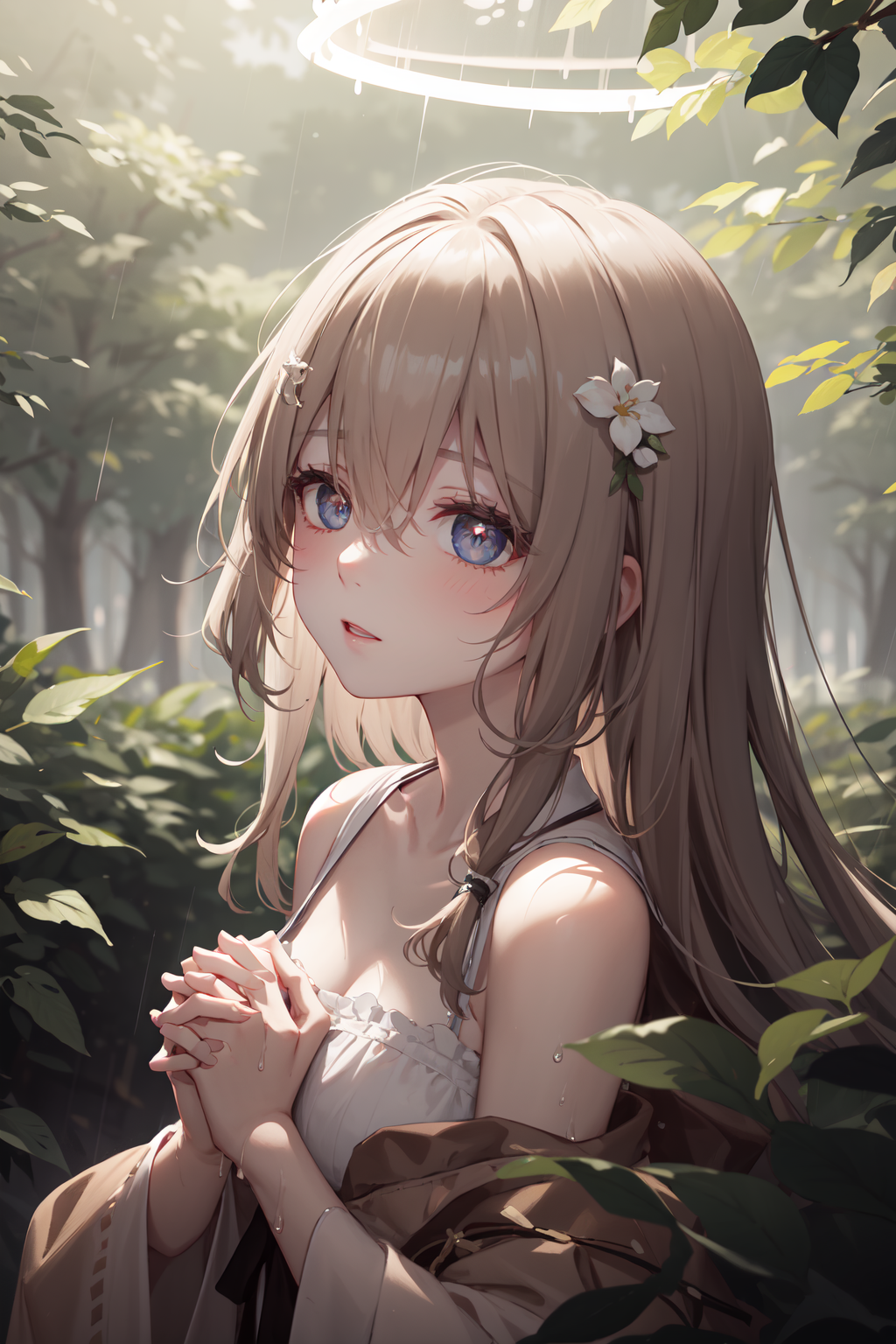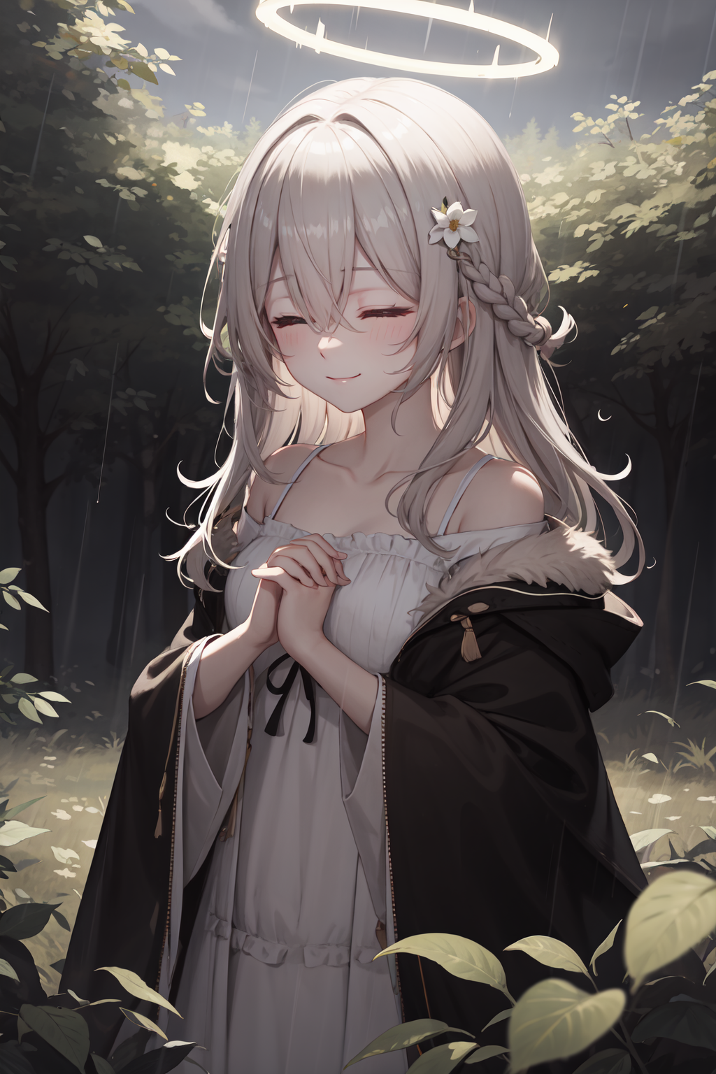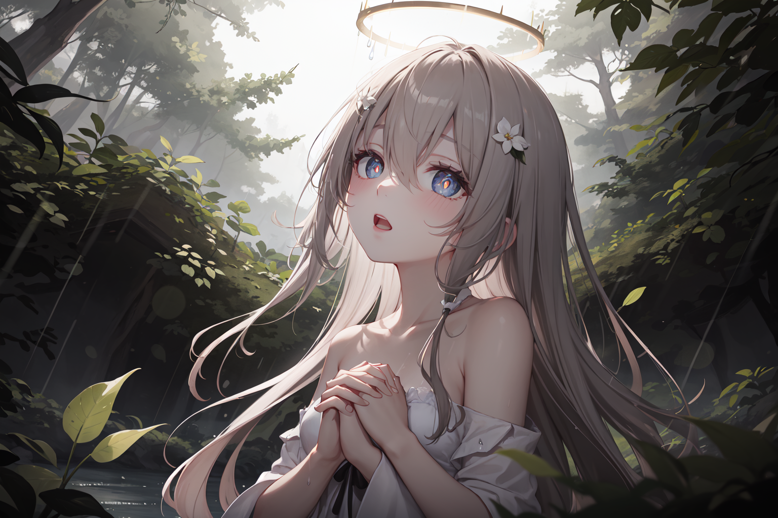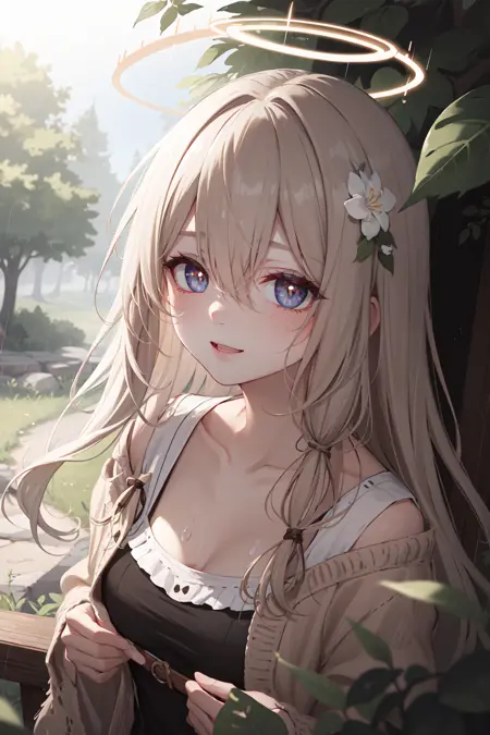 It is slightly shameful that the halos in the pictures are not so similar as the original one in the game. Sometimes the halo may become bigger or smaller. In addition, it is quite difficult for SD to generate the wings of the original style in the game, since the wings of a Sankta is really unique and distinct from the wings in the real world. Personally speaking, I also feel a bit sorry about these details.