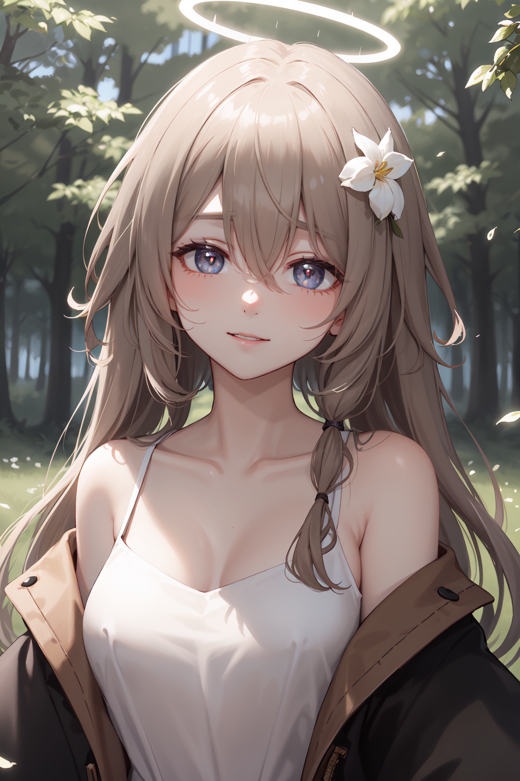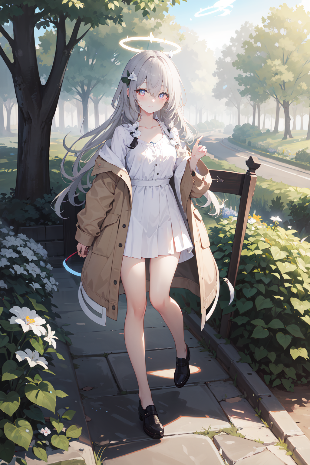 It is slightly shameful that the halos in the pictures are not so similar as the original one in the game. Sometimes the halo may become bigger or smaller. In addition, it is quite difficult for SD to generate the wings of the original style in the game, since the wings of a Sankta is really unique and distinct from the wings in the real world. Personally speaking, I also feel a bit sorry about these details.