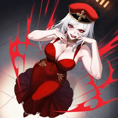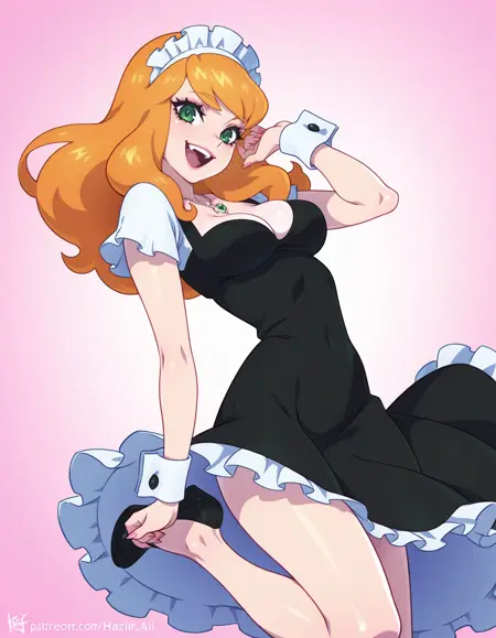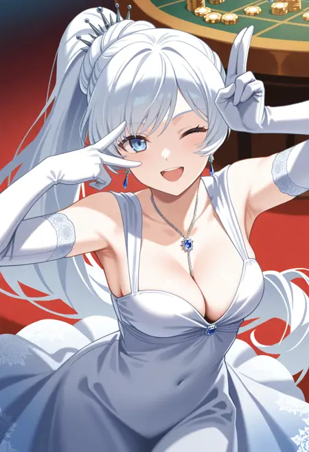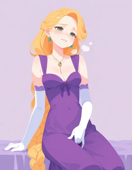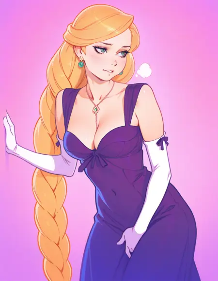 Trained on top of dress token, black dress brings it out harder but so far it's pretty good with colors. The Algerian love knot necklace is also trained, as are her earrings, but can be subject to flights and fancy of the latent space.