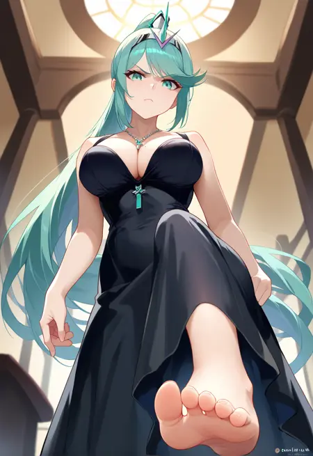 This dress doesn't have good training data on the bottom half so it'll just make that up but should be able to handle something with long dress, floor, heels, etc.
