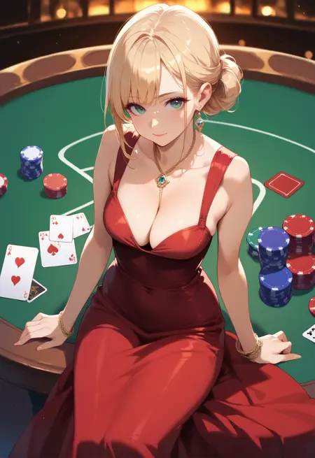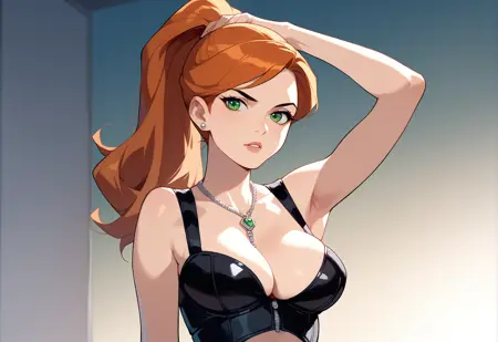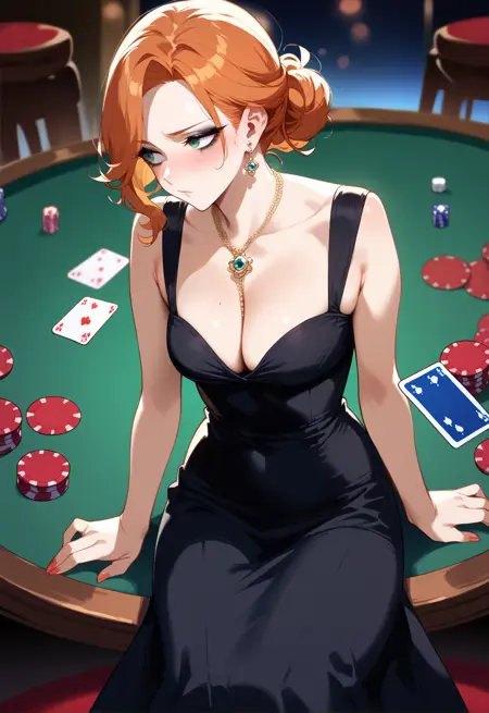 Trained on top of dress token, black dress brings it out harder but so far it's pretty good with colors. The Algerian love knot necklace is also trained, as are her earrings, but can be subject to flights and fancy of the latent space.
