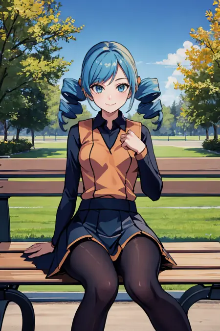 Default Outfit: shirt, long sleeves, vest, skirt, pantyhose