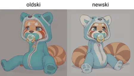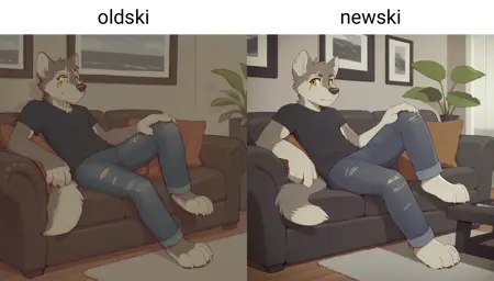 Trained on Skidoo's art style. Because the style changed over time I tried to train the older and newer style. The older sketchier style is invoked with oldski, the newer cleaner style with newski. The Training Data is not images, but prompts for the images. The images can be somewhat recreated with the prompts.