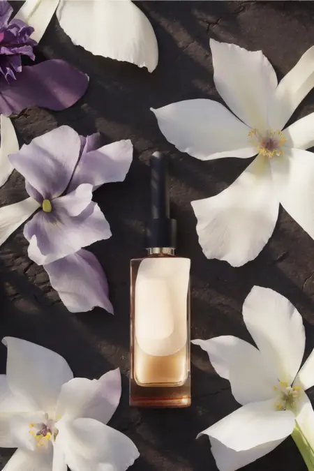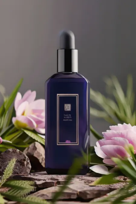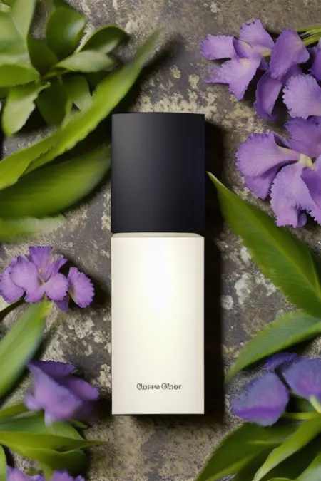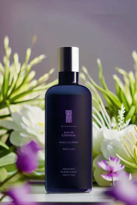 (masterpiece:1.33),(bestquality:1.33),(ultra-detailed:1.21),studio photography,(realistic:1.21),Product Photography,RAW photo,white flowers,purple flowers,leaves,(red flowers:0.8),volumetric lighting,Morning sunlight,square transparent glass bottle,film grain,<lora:MooMoo-Flower Cosmetic:1>,