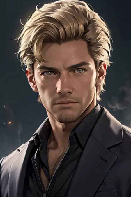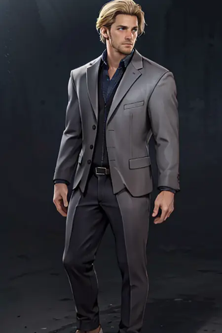 Prompt: Felix Richter, blond hair, stubble, pale blue eyes, debonair