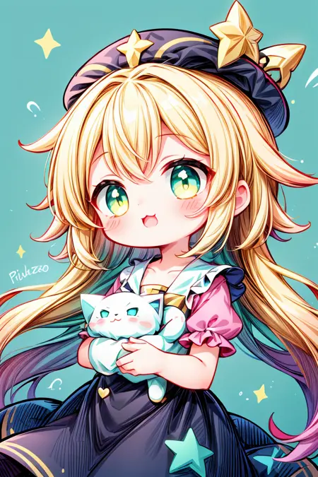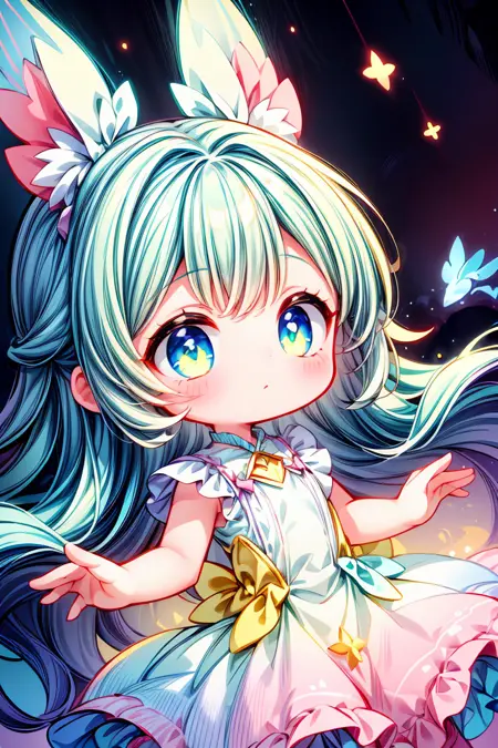 This model has a very cute anime style and produces very high quality images. No detail or quality enhancing loras needed to achieve high quality images. Many loras have been merged to train this model. Recommended to use the textual inversion: "EarthKawaii" to get an even cuter image: