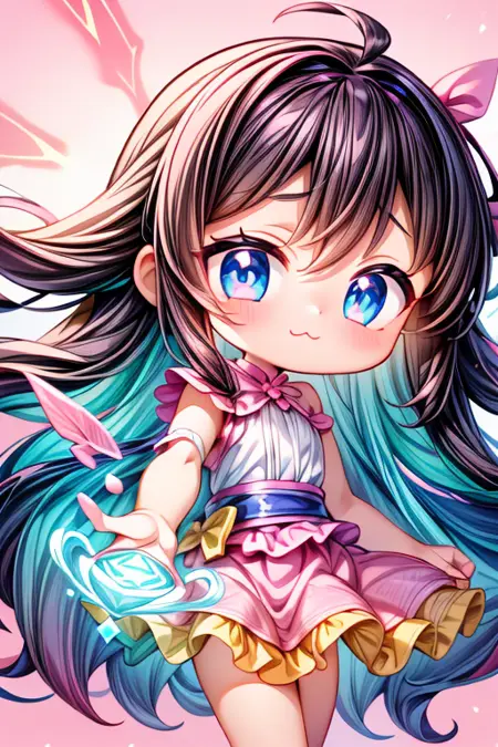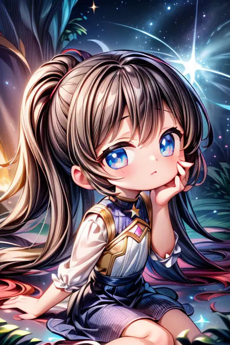 This model has a very cute anime style and produces very high quality images. No detail or quality enhancing loras needed to achieve high quality images. Many loras have been merged to train this model. Recommended to use the textual inversion: "EarthKawaii" to get an even cuter image: