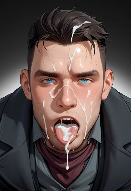 提示词:杰弗里·麦卡勒姆,深棕色头发,短发,平头,背头,灰蓝色眼睛,面部胡须,短须,黑色风衣,灰色马甲,深红色领结,黑色长裤,黑色靴子,阴暗氛围