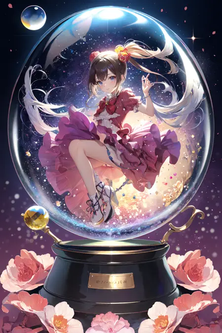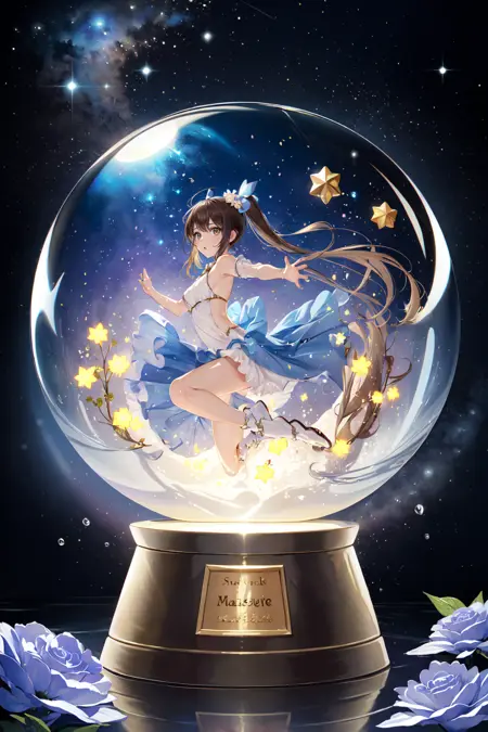 顾名思义,就是如示例图中那种感觉,水晶球内有各种人物、场景等元素,小动物也可以,不限于人物,我的训练集中包含丰富内容。效果相当唯美,但因人物占比过小,容易出现手或脸崩坏,建议搭配修脸插件使用。