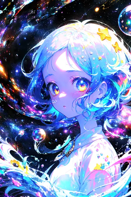 **Prompt推荐:**二次元(眼睛会⭐)、宝石类、液体、星空等,具体Prompt可以看参考图片,希望各位返图~