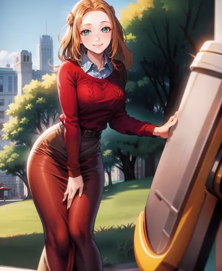 She can wear any outfit you want, but if you need her default clothes, prompt dianaztd, sweater, long skirt, red pantyhose.