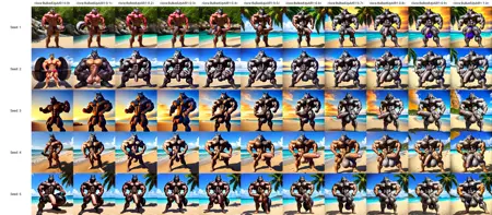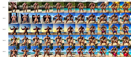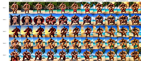 - 이 LoRA는 초현실적 AI 이미지로 훈련되었으며, 각 이미지에는 단 하나의 근육질 남성만 포함되어 있습니다.