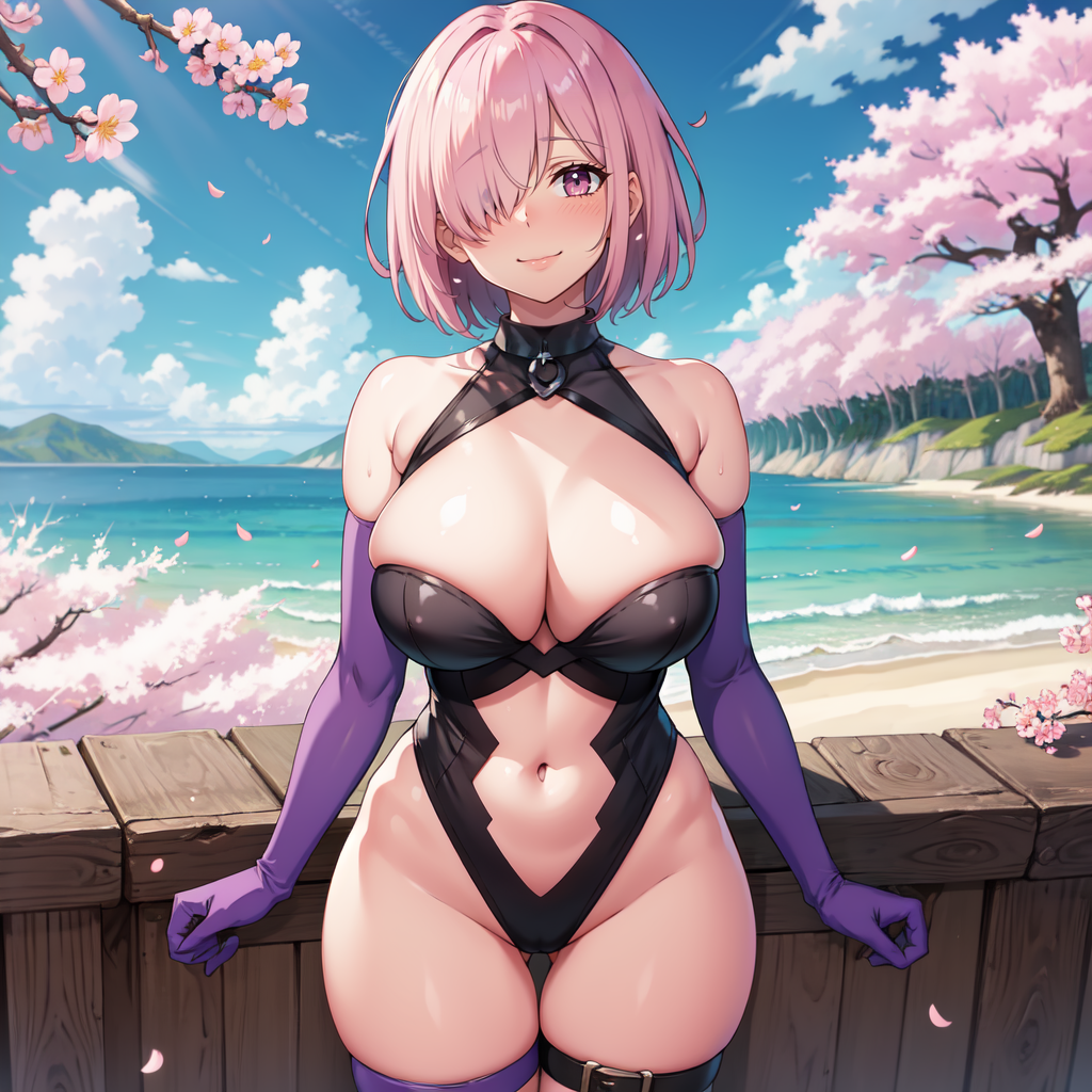 positive: "leotard, thigh strap, grey collar, elbow gloves, navel".
