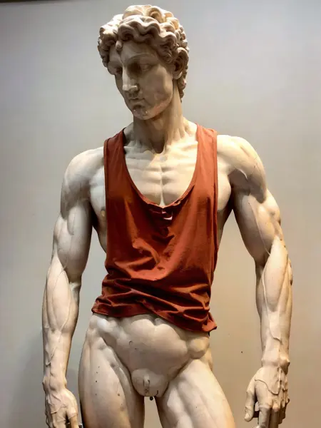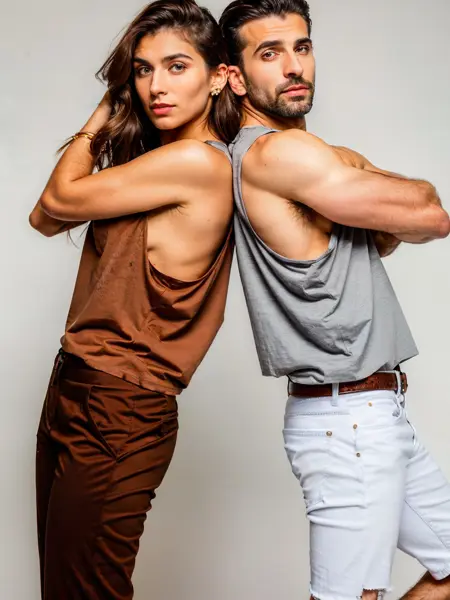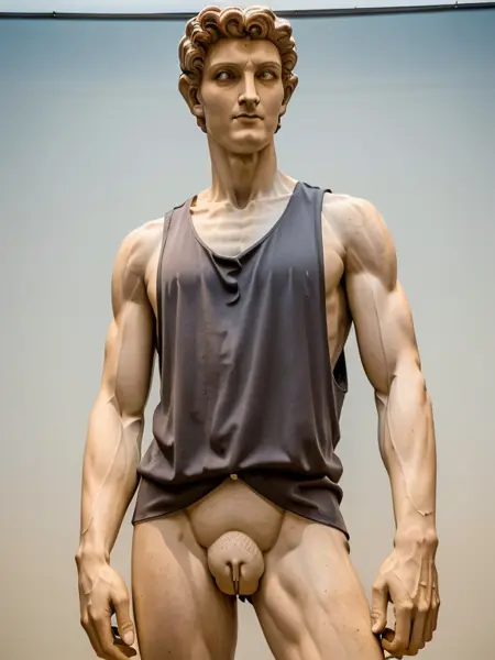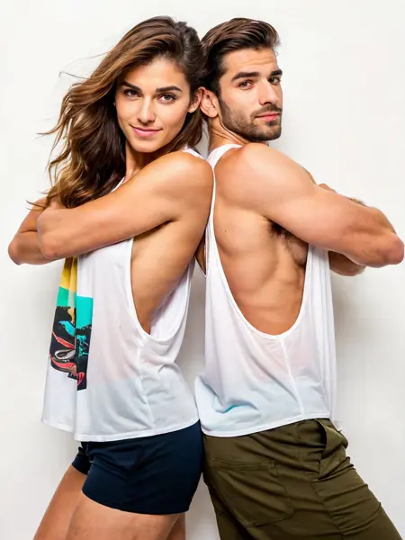 트리거 단어는 필요 없습니다. 하지만 탱크탑, 민소매 셔츠, 헬스장용 스트링어 또는 싱글렛을 언급해야 합니다. 남성의 경우 배가 너무 많이 드러나는 크롭탑이나 전신 노출이 나오면 “Shirt:1.2”를 사용하고, “top”이라는 단어 없이 단순히 “tank”만 사용하는 것이 도움이 됩니다.