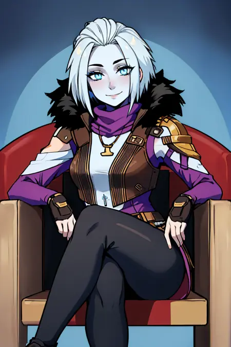 Default Outfit: fur trim, fingerless gloves, black leggings, necklace
