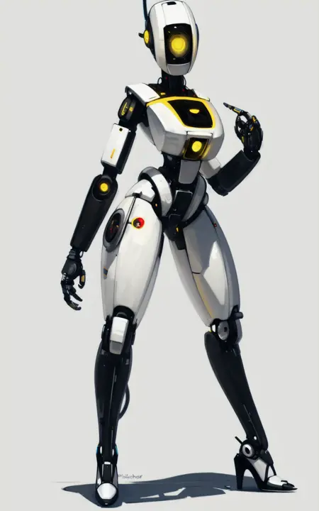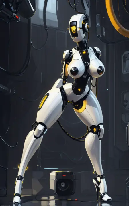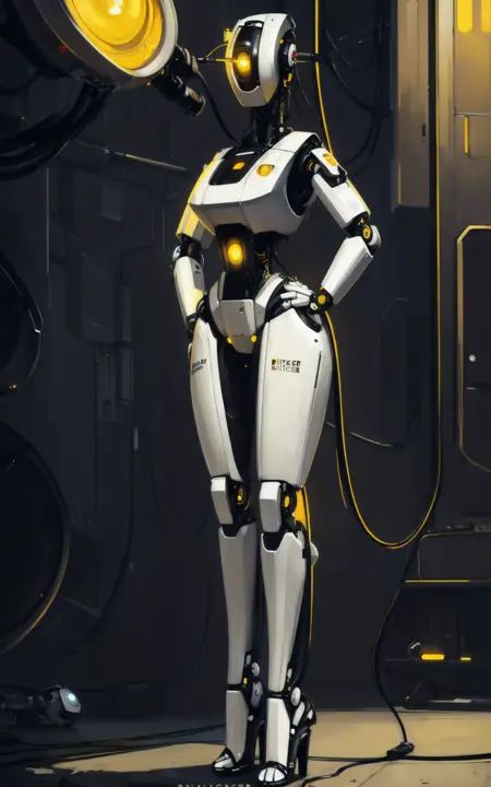 Reinforcement Tags: robot,humanoid robot,robot joints, joints,android,yellow eye,one-eyed,no mouth, science fiction,cable**