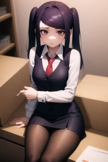 服装: ネクタイ、パンスト、スカート、ベスト、白シャツ