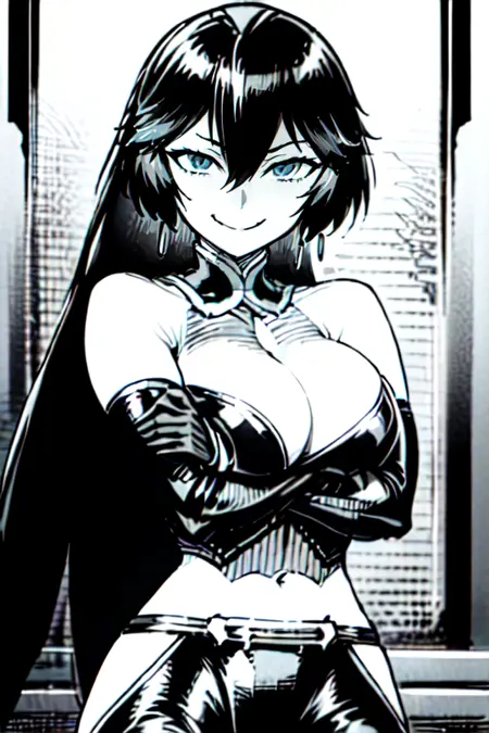 - 트리거: 여성, 긴 머리, 황금색 눈, 칼라, 코르셋, 장갑, 컷아웃 바지