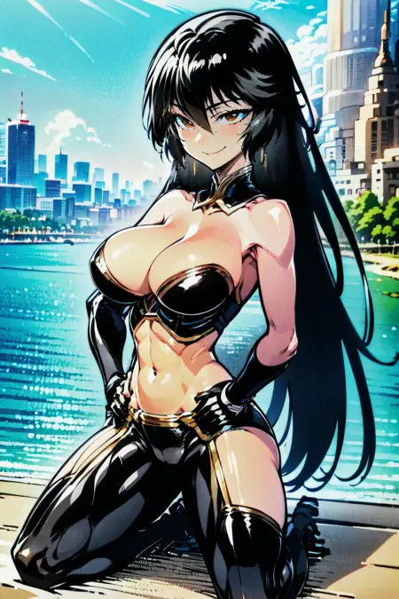 - 트리거: 여성, 긴 머리, 황금색 눈, 칼라, 코르셋, 장갑, 컷아웃 바지