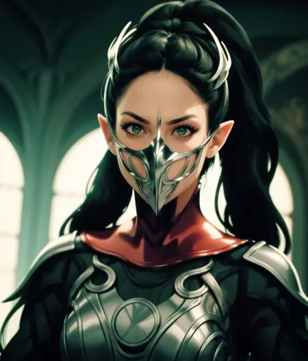 (mask),近景、上半身可能会促使它显现出来。看看我的示例。如果你没得到面具,别怪我,那只是额外奖励。我一直在尝试使用 adetailer,通常会有帮助,去噪值设为 0.6 或 0.7。
