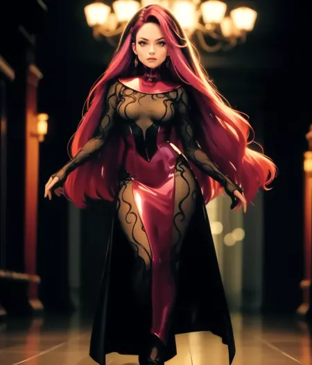 使用 c3ll、mesh bodysuit、posture collar、black hair、red hair、multicolor hair 调用。我保留了头发,因为我认为这是服装的一部分,尽管并不完全准确。但如果你去掉这些标签,应该可以随意调整。