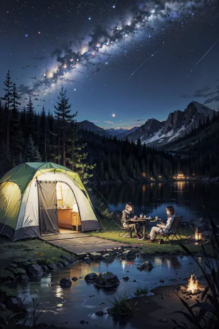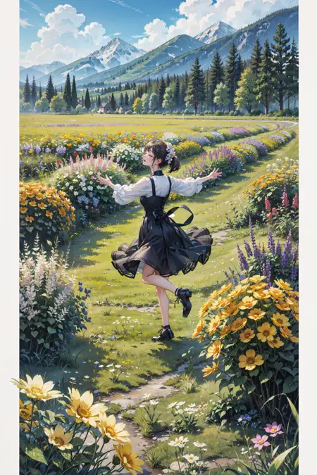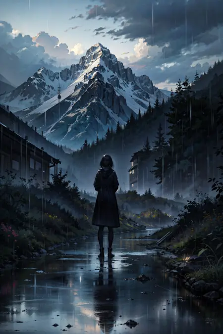 This is a super high detail anime model with the main goal of generating immersive quality backgrounds with or without a subject. Even if you choose to put the focus on a subject, the model can still create intricate details of the face, hair and outfit. The model have a more realistic color range and darker tone_._ As usual, hands are not my strong point, please inpaint if needed.