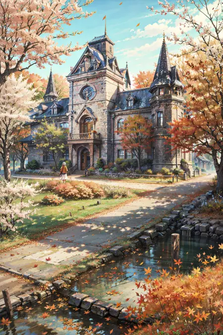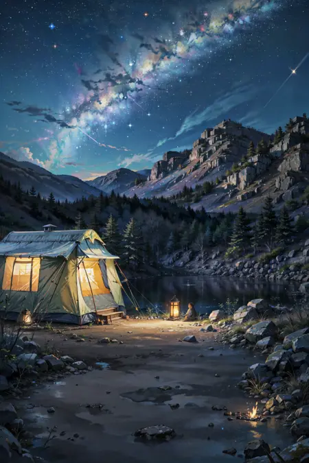 This is a super high detail anime model with the main goal of generating immersive quality backgrounds with or without a subject. Even if you choose to put the focus on a subject, the model can still create intricate details of the face, hair and outfit. The model have a more realistic color range and darker tone_._ As usual, hands are not my strong point, please inpaint if needed.