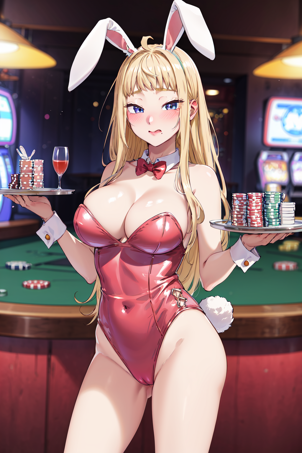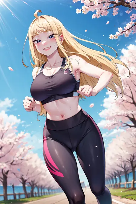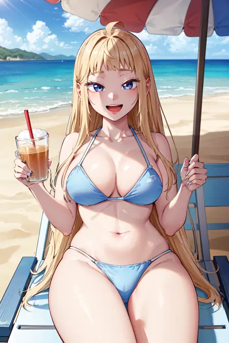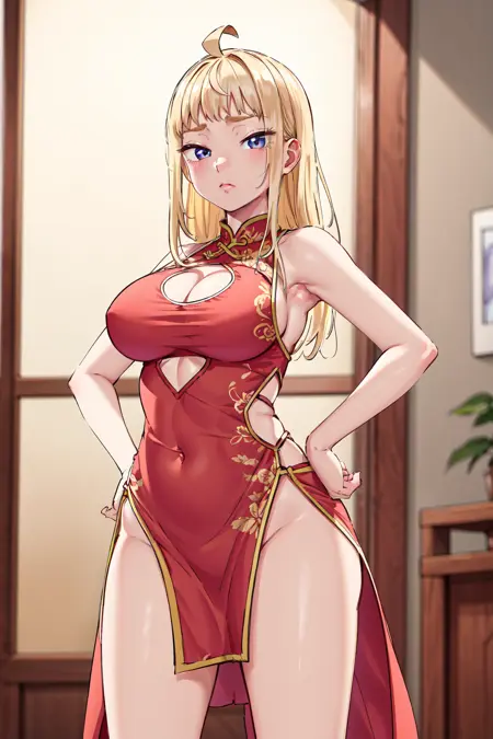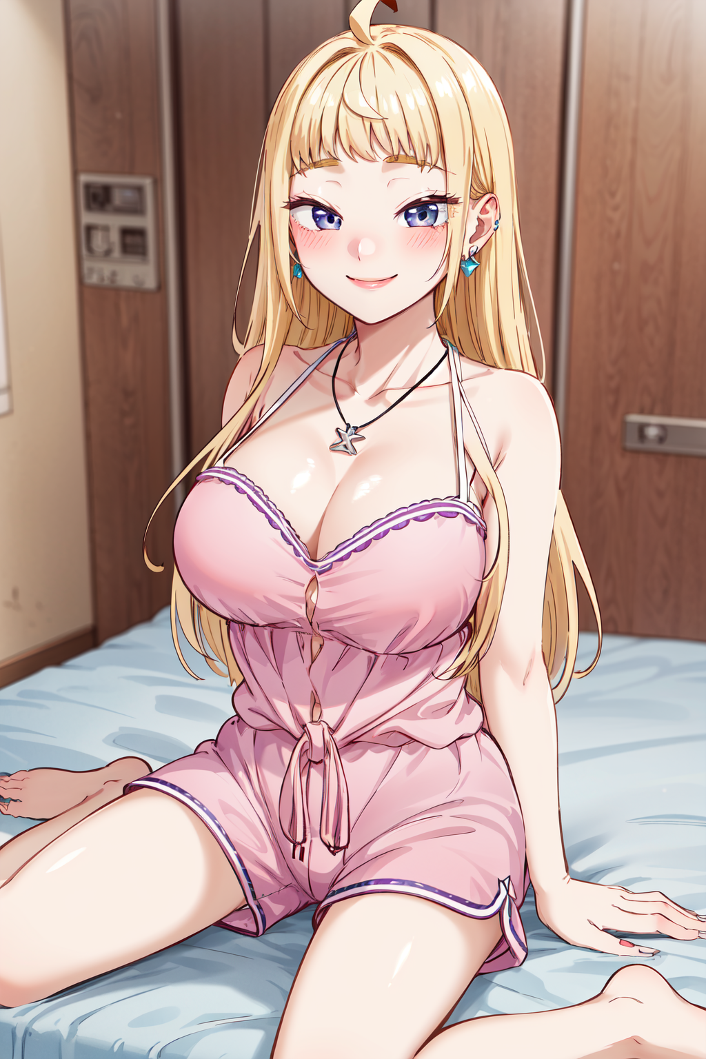 • bbminami,long hair,large breasts,ahoge,earrings,necklace,dress,pink dress,shirt,bare shoulders,shorts