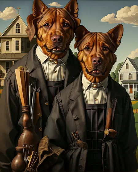 This is HuWoof (Human + Woof): A LoRA for generating human(oid) dogs as well as getting random dogs to appear in scenes where the trigger word 'HuWoof' is used.