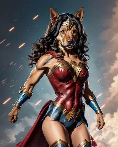 This is HuWoof (Human + Woof): A LoRA for generating human(oid) dogs as well as getting random dogs to appear in scenes where the trigger word 'HuWoof' is used.