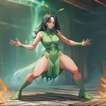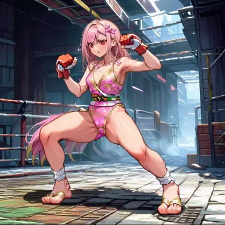 건강 바, UI, 메터, 텍스트, 숫자 등을 제거하려면 부정 프롬프트를 사용하세요. 다른 LoRA 모델을 사용하는 경우, 다른 모델의 강도를 0.8 이하로 낮추세요. "파이터 스프라이트"를 사용하는 것도 약간 도움이 되지만, 프롬프트로 필요하지 않습니다.