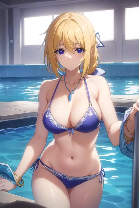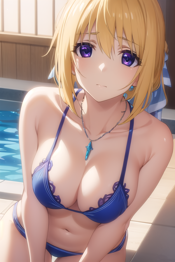 navel, jewelry, swimsuit, bikini, necklace, blue bikini, pendant,