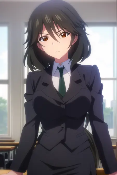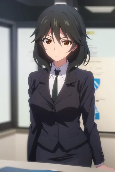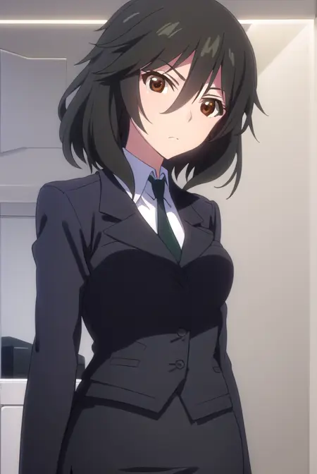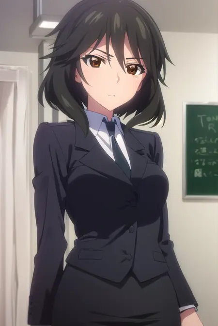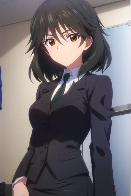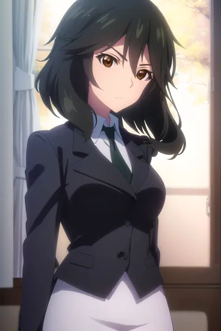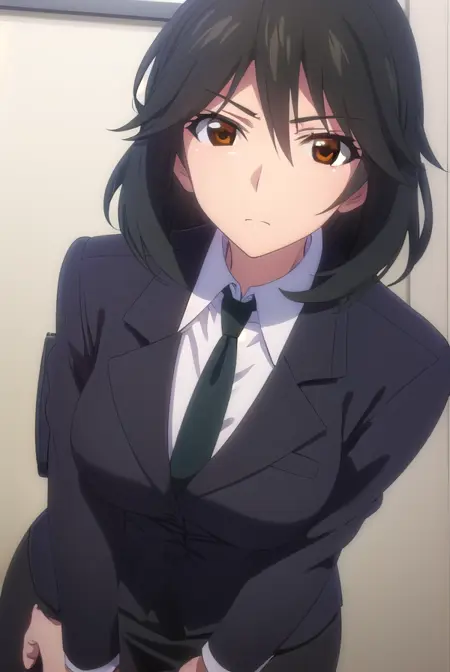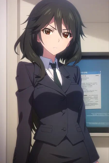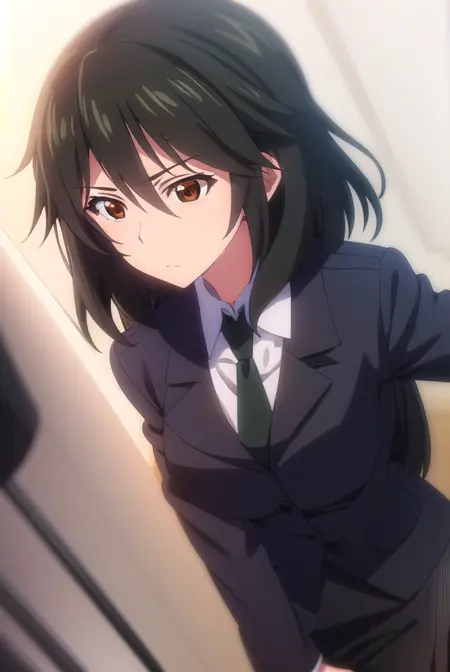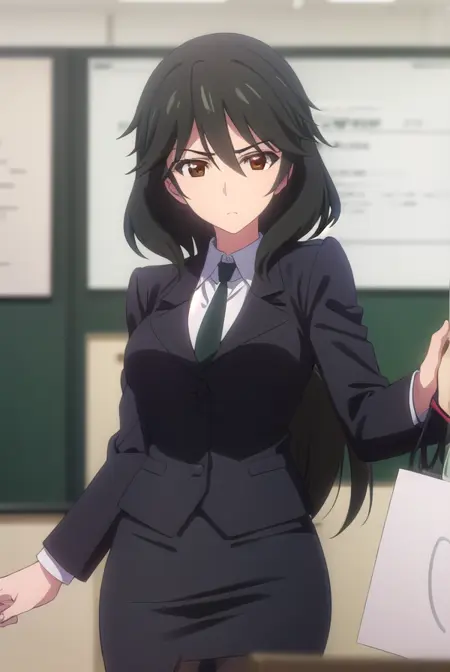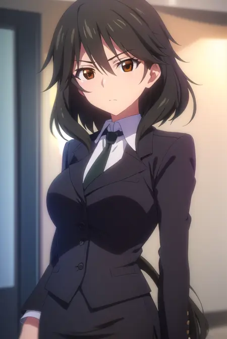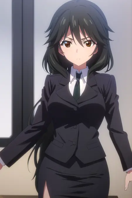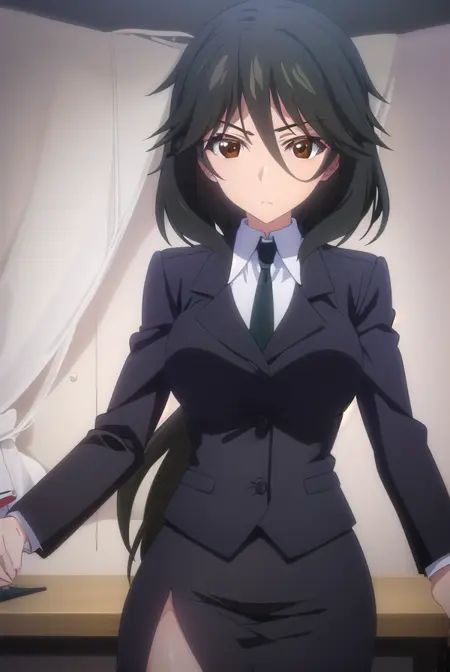 chifuyu orimura, long hair, bangs, black hair, hair between eyes, (brown eyes:1.3),