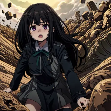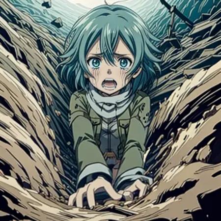 I experimented with applying the LoRa effect to an image of a female high school student caught in a landslide. After acquiring a large number of images of her in the midst of the landslide, I decided to use them to create a scene where a person is almost buried in the debris.