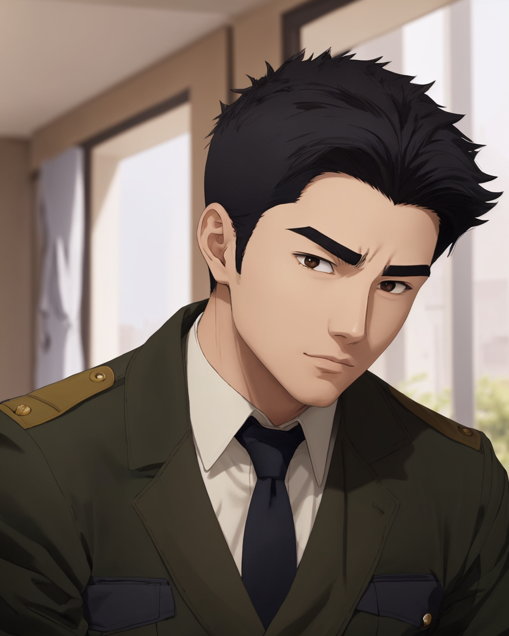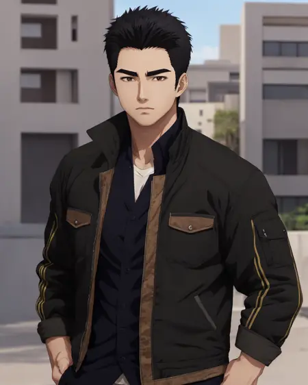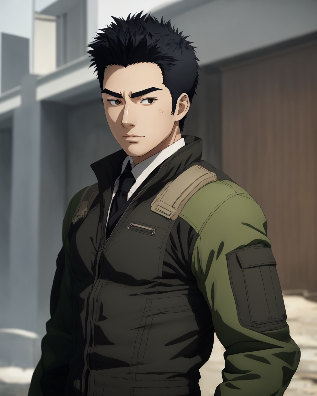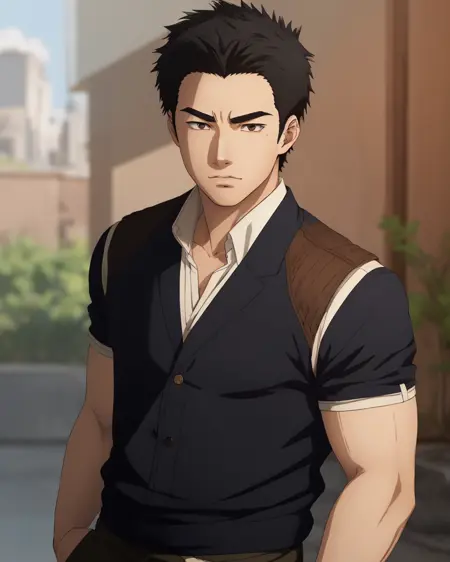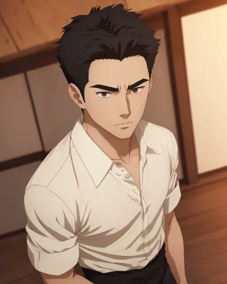 isami ao, bangbravern, 1boy, male focus, solo, black hair, short hair, thick eyebrows, upper body, black eyes, looking at viewer