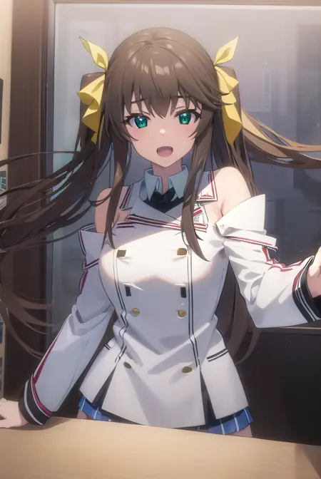 肩出し、袖なし、制服、リボン、青いリボン、(赤いトリム:1.2)、制服、軍服、(白い軍服:1.5)、