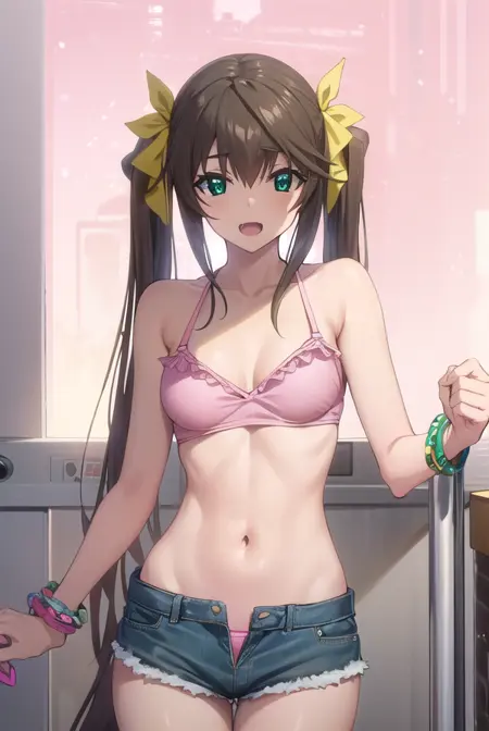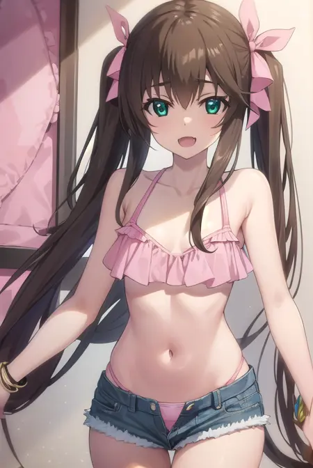 へそ、ジュエリー、水着、ビキニ、ショートパンツ、お腹出し、ブレスレット、短いショートパンツ、デニム、ビキニトップのみ、デニムショートパンツ、(ピンクのビキニ:1.5)、カットオフ、