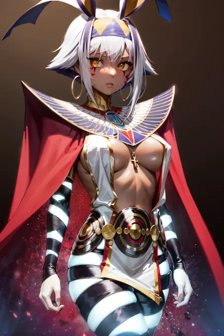 通常の聖晶は、ヒーロー・スピリット・ニトクリスが「神罰の恐怖の裁き手」という側面を内に抱いており、その側面が特に強く現れるとき、彼女はこのアルターサンクチュアリ・グラフの姿を取る。 namely、砂漠の夜の凍える風に似た姿:ニトクリス・アルター。」**