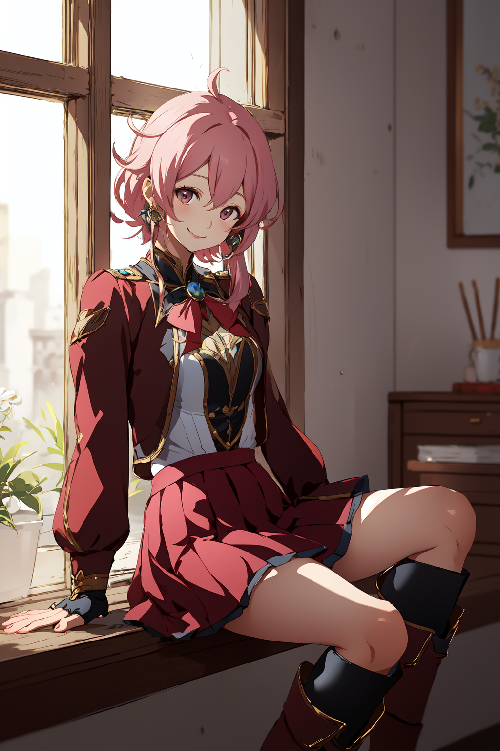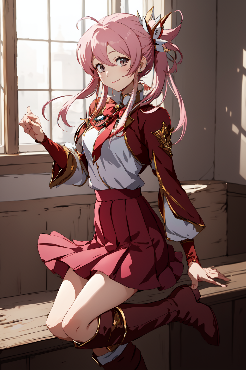 It is a very flexible model that looks great in all kinds of clothing. The downside is that it doesn't draw Almeda's default skin very well (as the canonical skin is one of the many skins). You can use "red skirt, hair ornament, white footwear, knee boots" to draw the default skin.