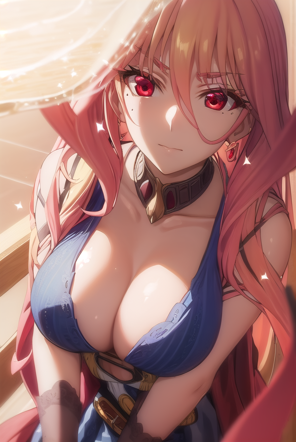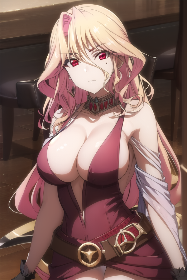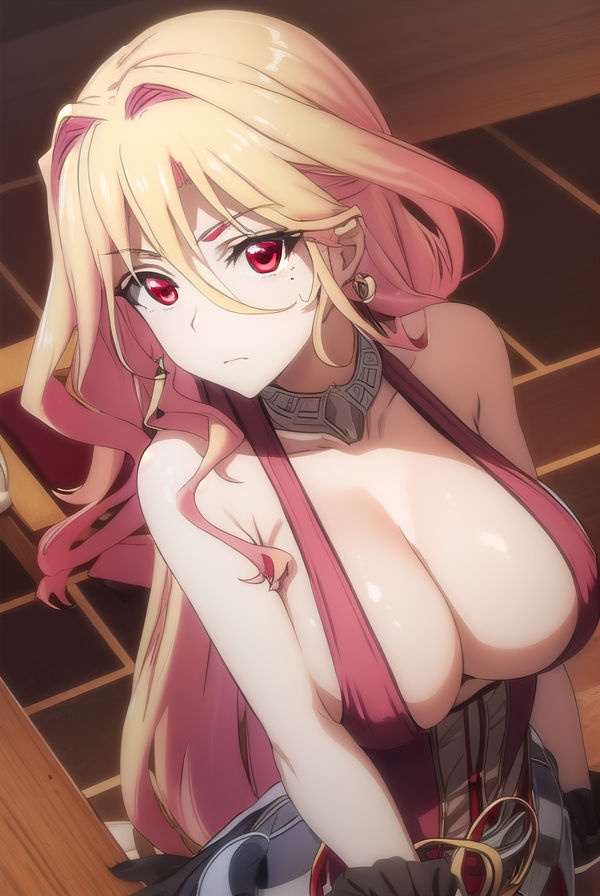 squall meusel, long hair, blonde hair, (red eyes:1.3), pink hair, multicolored hair,