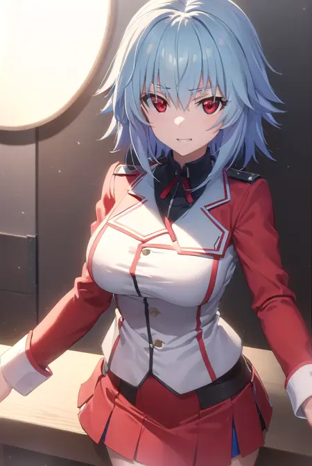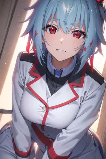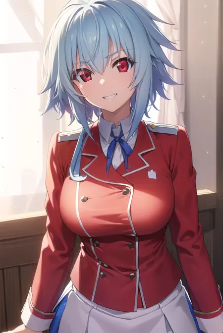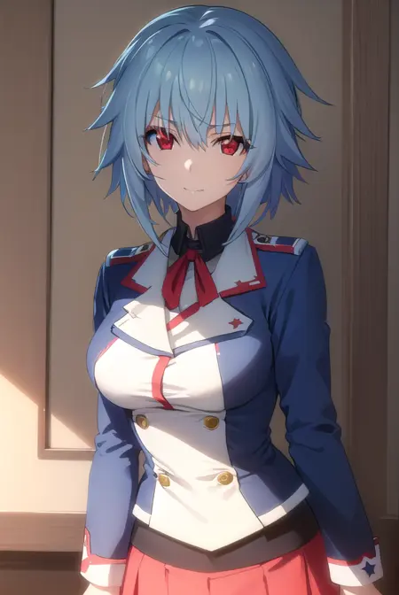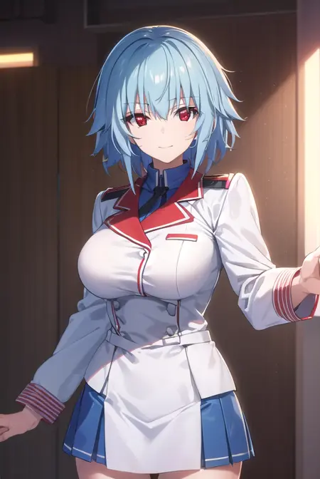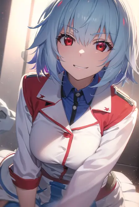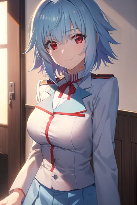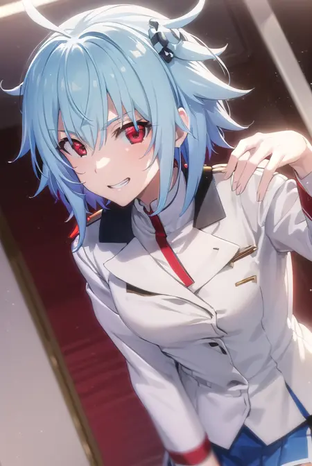 tatenashi sarashiki, short hair, blue hair, (red eyes:1.3),