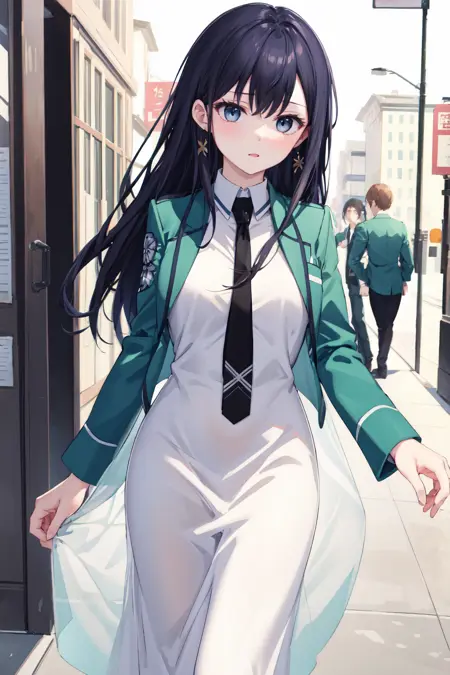 magic_high_school_uniform,green jacket,white dress,black necktie