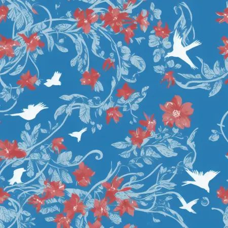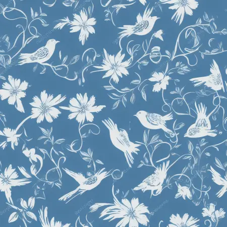 • 花卉与藤蔓图案,背景为蓝色,上面有飞鸟.png