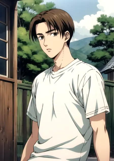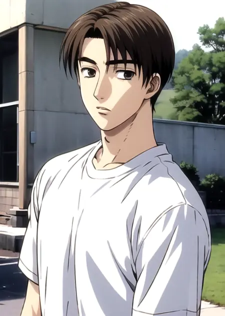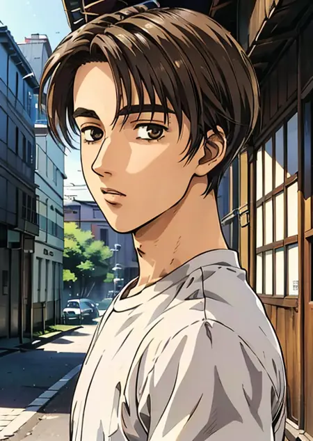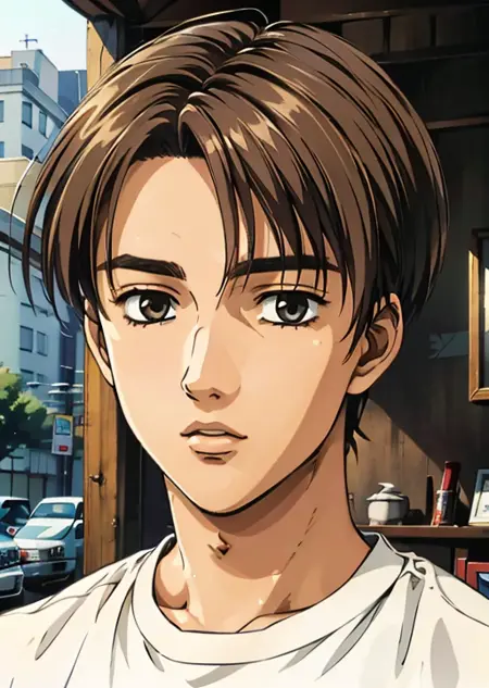 Character trigger : takumi_fujiwara, 1boy, solo, brown hair, shirt