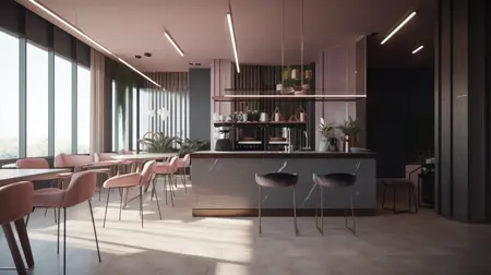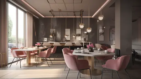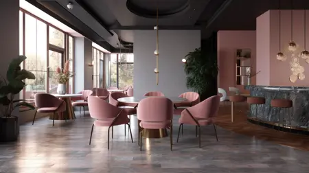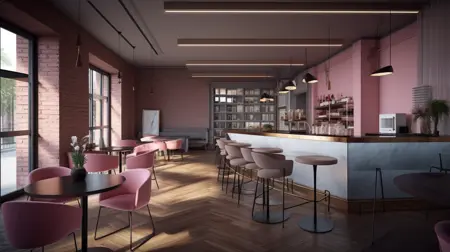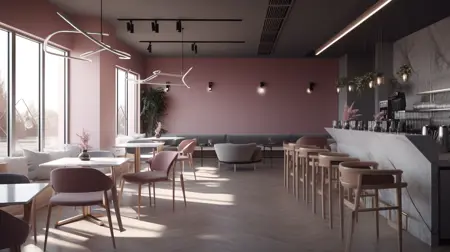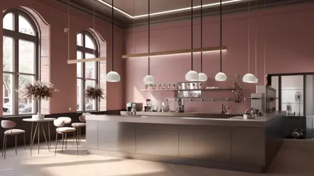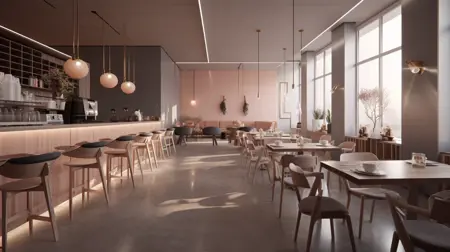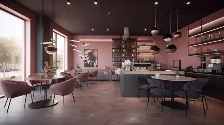 この時代のレストランやホテルのフロントエントランス内装レンダリングに最適です。