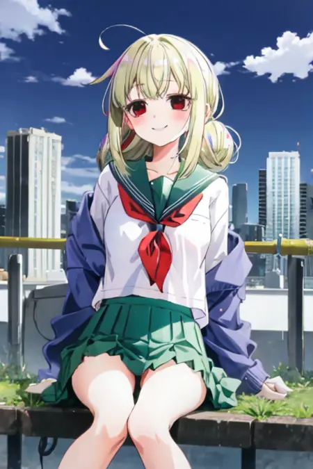 **aragakiwi**를 사용하여 그녀를 소환하세요. 그녀의 머리를 만들기 위해 **shortstack, 빨간 눈, 금발, 앞머리, 머리 땋기, 눈 밑 점**을 사용하고, **녹색 머리장식, 녹색 재킷, 긴 소매, 손목을 넘는 소매, 배꼽, 검은 속옷, 고무 밴드, 부츠, 허벅지 길이 양말**을 사용해 레오파드 복장을 입히세요. 또는 **학교 유니폼, 카디건, 노란색 세라후쿠, 접힌 스커트, 녹색 스커트**를 사용해 학교 유니폼을 입히려 시도하세요. 혹은 **재킷, 어깨 노출, 벨트, 파란색 스커트**를 사용해 캐주얼 복장을 입히세요...어떤 식으로든요.
