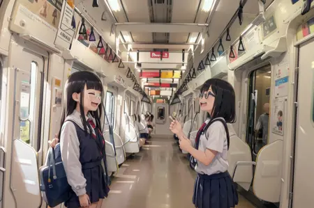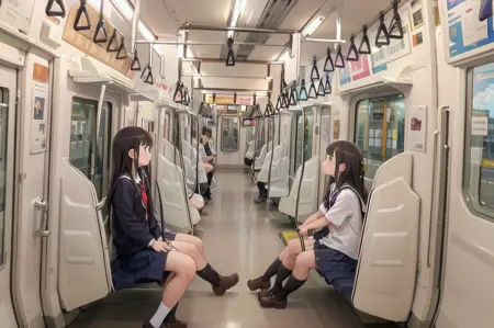 This is a LoRA that may possibly depict an interior-like scenery of the JR East E233 series running on the Keihin-Tohoku Line in Tokyo. However, it is not practical at all, because the seating arrangement and door arrangement tend to be quite irregular.これは東京の京浜東北線を走るJR東日本E233系の車内っぽい風景がもしかすると描けるかもしれないLoRAです。でも座席配置やドア配置がかなり崩れがちなので全く実用的ではありません。