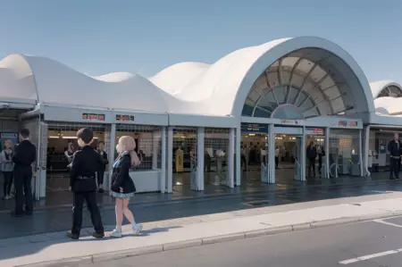 これは、東京にあるTWR臨海高速鉄道 りんかい線 国際展示場駅っぽい風景をもしかしたら描けるかもしれないLoRAを目指しましたが、結果的に異世界の駅舎を描くようになってしまったLoRAです。